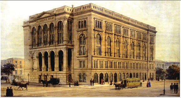 What is certain is that Tufts installed his “vertical railway” in two of the most important hotels of the time: the Fifth Avenue Hotel in NYC and the Continental Hotel in Philadelphia. The installation in the Fifth Avenue Hotel was put into operation in 1859, the same year that Cooper’s Foundation Building was opened. The Fifth Avenue Hotel was a luxury hotel (1859 – 1908) that offered guests the convenience of easy access to the upper floors with the Otis Tufts elevator. The system was safe but also extremely expensive. The other of the only two elevators of this type was built in the Continental Hotel, which was the most elaborate hotel of its time when it opened in 1860. The elevator in the Fifth Avenue Hotel ran smoothly for 15 years, but the brakes on the Continental Hotel elevator failed and the car slipped, causing one person to sustain injuries.