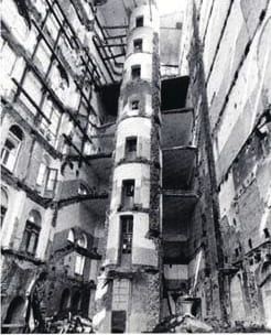 The free-standing elevator shaft erected inside the building was a sensation, particularly due to its round cross-section, as the usual freight elevators (freight hoists), which were already numerous in factories, had rectangular platforms and shaft cross-sections. Cooper opted for the round shape, as he reportedly believed this was the most efficient way of accommodating the most people in a shaft in terms of space and VT. However, the round cross-section was also the reason the first steam-powered elevator with a round cabin was not installed in this building until a few years later by Peter Cooper’s son Edward.