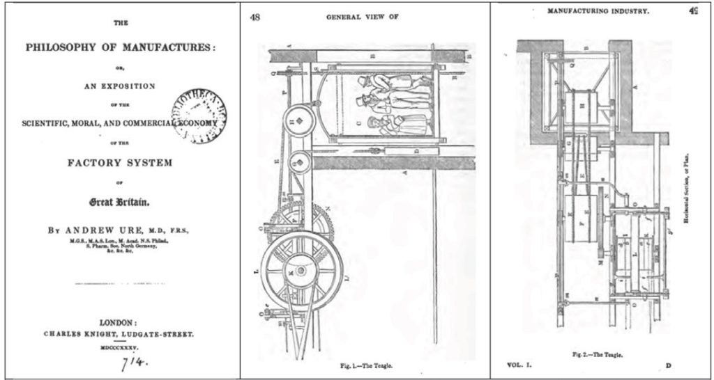 A further description of this “crane,” now called the Teagle (Tackle?) or Hoist, is to be found in a book published in 1835 by Andrew Ure titled The Philosophy of Manufacturers, where some alterations have evidently been made from the original 1803 version.