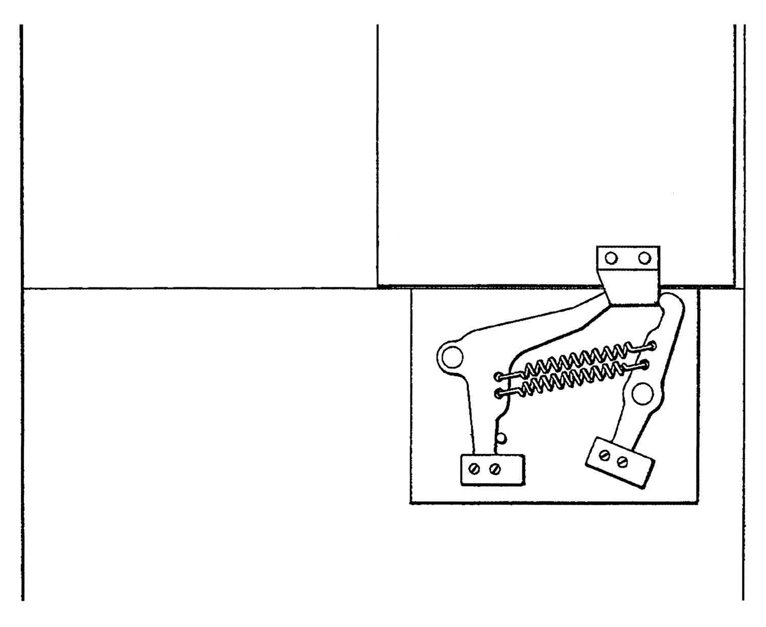 - Figure 1: Ritter door unlocking mechanism; drawing derived from image found in “Safety Device for Elevators,” U.S. Patent No. 838,213 (December 11, 1906).