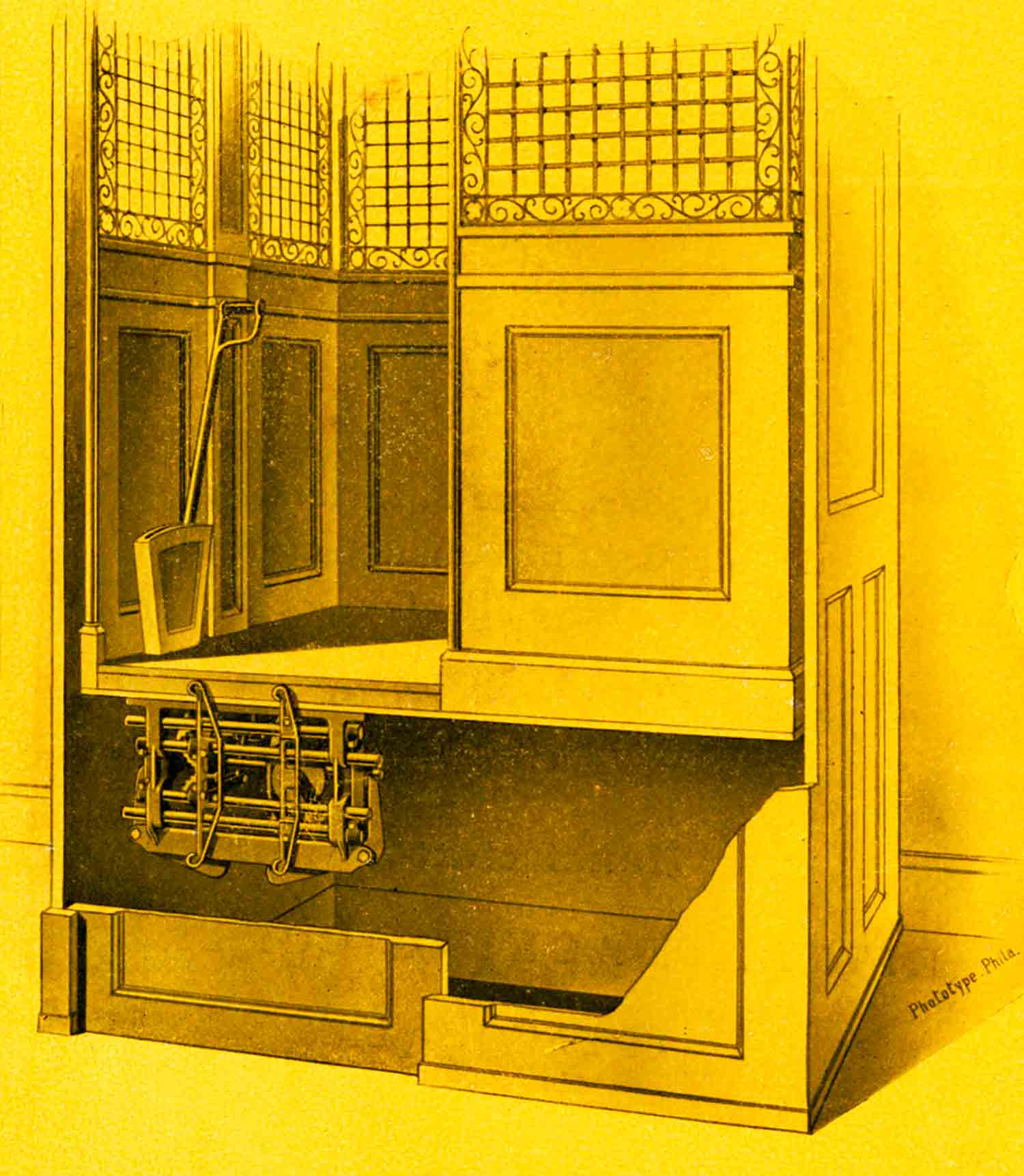 The awareness of these installations raises a question that often goes unanswered: how well did the safety work? In this case, one (very brief ) review of its operation exists. In 1915, the Building Managers’ Association of Baltimore appointed a committee charged with investigating “the elevator door locking devices used in buildings in Philadelphia.”[3] The committee examined the safeties installed in the Bellevue-Stratford Hotel and reported that, in their opinion, “these devices are dangerous to passengers, on account of projection in hatchway.”[3] They also noted that the safeties were “inoperative on several floors, particularly on the first floor.”[3] The context for this review is also important.