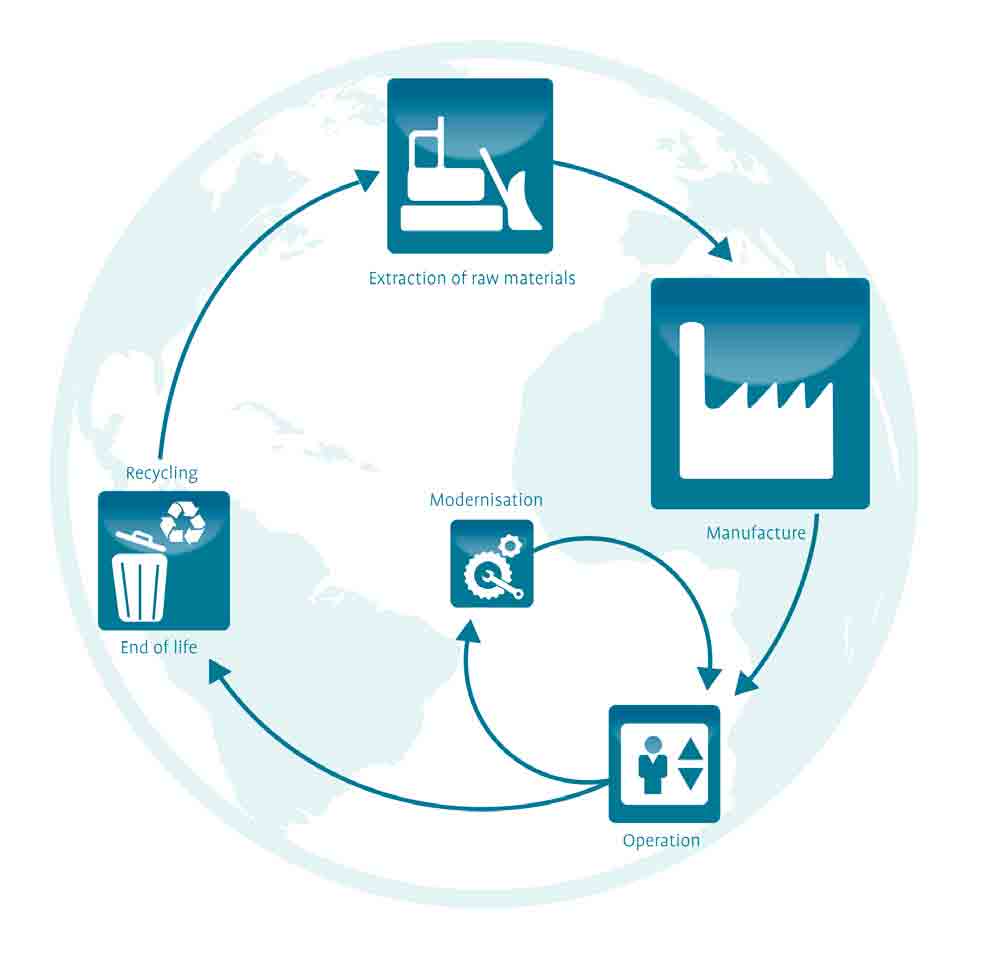 - The manufacture of an elevator system has a significantly greater impact on its environmental footprint than the total operating time.