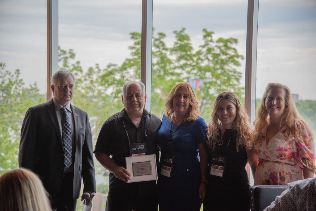 The CECA Awards Breakfast set the tone for the day. Attendees walked into the ballroom on a red carpet to find a stage decked out with gold statuettes to mimic The Oscars and our hosts dressed to the nines. Alcor Elevator’s Paul Pettener welcomed everyone to the convention and Sanchez to the stage. Honorary members in attendance were recognized, as were other association leaders present. Honorary CECA member Bill Rogan was welcomed to the stage to talk about his friend and new honorary member, Ron Quinn. Though Quinn couldn’t be there to accept his new honorary membership award in person, his daughter stood in for him, and Rogan shared stories about Quinn and celebrated his career in grand style.
