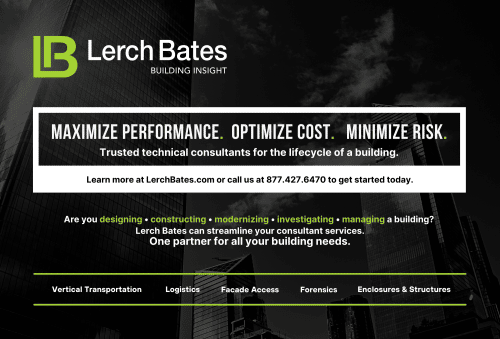 The first and largest independent VT consulting organization specializing in design, specifications and administration of new + modernization installations. Provides maintenance contracts, due diligence, national account services; implementation of supply chain/materials management, waste management and materials handling systems; facade access services; enclosure design; pedestrian circulation and forensic investigation. Learn more or find a location nearest you at LerchBates.com.