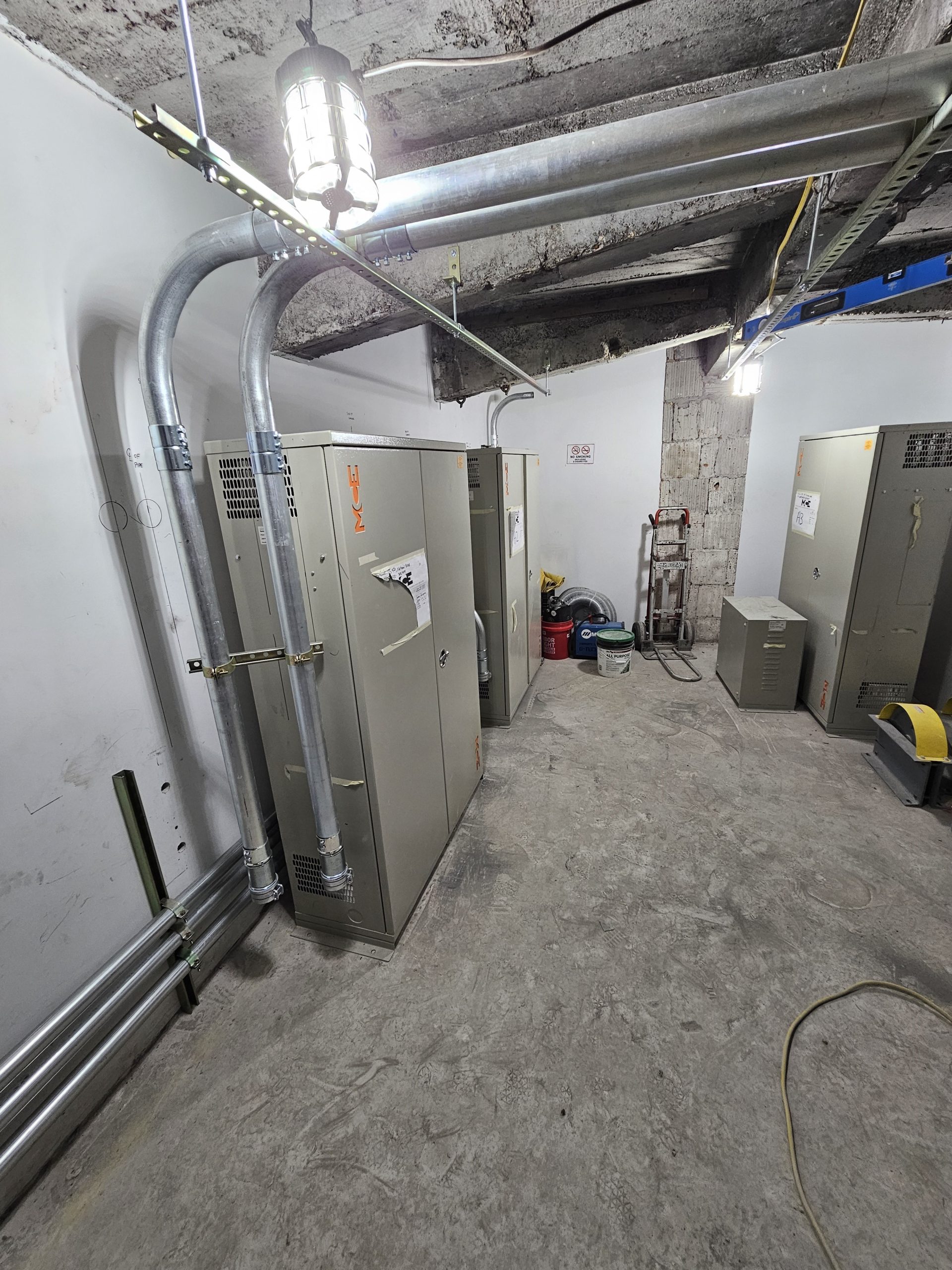 G-Tech Elevator Associates LLC tells ELEVATOR WORLD it began work on the control room and overheads at Manhattan’s Flatiron Building in August. The G-Tech team mobilized on-site at the landmark 22-story structure in April to tackle the bulk of the elevator work for its conversion into 60 residential units. G-Tech previously removed eight elevators as developer The Brodsky Organization completely gutted the inside of the building to construct a new core while preserving much of the structure. G-Tech’s scope of work consists of installing three new machine-room-less elevators and modernizing a sidewalk elevator. All units will have BTS Elevator Packages systems including Elsco roller guides, Hollister-Whitney governors and safeties, GAL door equipment, Imperial machines, Monitor fixtures and MCE controllers, G-Tech’s Brock Glenn said.