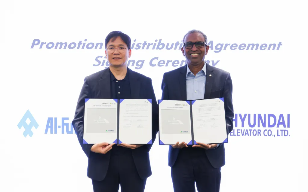 Al-Futtaim Contracting, a division of Al-Futtaim Real Estate in the U.A.E., Saudi Arabia, Qatar and Egypt, on September 9 announced an exclusive partnership with South Korea’s Hyundai Elevator to “deliver next-generation elevator and escalator technologies to the Kingdom of Saudi Arabia (KSA).” The agreement, which entails Al-Futtaim serving as the sole distributor to supply, install and maintain Hyundai’s full suite of vertical-transportation (VT) solutions in KSA, was signed by Al-Futtaim Contracting Managing Director Murali S. and Hyundai Elevator Head of Global Sales Yum Kyu Sang at Hyundai Elevator’s Seoul headquarters. As part of the visit, Murali toured the OEM’s Smart Campus in Chung-Ju City that includes the 250-m-tall Hyundai Asan Test Tower, featuring elevators capable of speeds of up to 21 m/s. The partnership will encompass all VT products, including machine-room-less elevators, escalators, moving walks and ultra-fast, high-speed elevators, “supporting the Kingdom’s ambitious urban and infrastructure initiatives.”